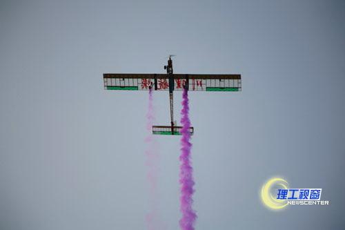 现场表演了一飞冲天的水火箭、每升汽油能够行驶519KM的节能车现场行驶、以及不久前在“科研类全国航空航天模型锦标赛”中获得两个一等奖的航模飞行展示。