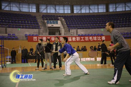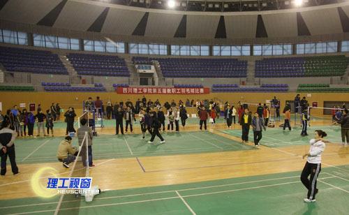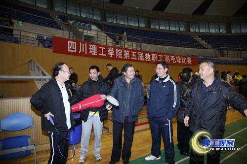 12月12日下午,伴随着冬日的细雨,瑟瑟的寒风,由校工会主办、校教职工羽毛球协会承办的我校第五届教职工羽毛球比赛在学校体育馆隆重举行。来自全校各二级学院和机关各分工会组成的13个代表队参加了比赛。党委书记游建军亲临现场观看了比赛,党委副书记唐健禾,副院长蔡乐才、王成端亲自挥拍上阵,与队员们进行了切磋。