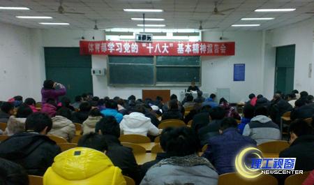 为了让广大师生更好地学习和贯彻党的“十八大”精神,12月12日下午,体育部关心下一代工作委员会成员,原自贡市委宣传部副部长吴树伦在汇南208室为体育部师生全面解读“十八大”精神。关工委伍泽礼老师、体育部教师、学生党员和入党积极分子参加了报告会。报告会由党总支书记曾玉琴主持。