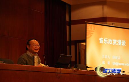 唐健禾用充满智慧、情趣的艺术体验,给同学们带来美的享受,引领同学们在音乐的海洋中遨游,他分别从音乐作用与功能、音乐形式分类等方面作了深入浅出的阐述,把大家带入了一个情趣盎然的音乐世界;同时唐健禾以独特的讲解和现场聆听相结合的方式,具体介绍了音乐的艺术表现特点、听觉艺术、四种类型唱法、器乐形式、器乐表现形式以及他自己的音乐故事等,为学生带来了欣赏音乐、培养提高音乐艺术修养的理念和方法。