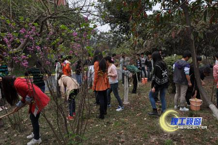 中午1:00,在学院学工办主任郭萍、辅导员杨秀英老师的带领下,两委会全体成员以及10、11级各班代表在化药林开展除草浇水护林活动。同学们弯腰、挥锄辛辛劳作。春日煦暖,化药林换上了美丽的新装迎接灿烂的春光。“种美好回忆,览斑斓春色,迎多姿生活”的口号在化药林传播。