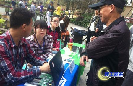 早上8:00,同学们就早早来到了社区指定地点忙碌起来,精心布置着场地。在晨光下,小区居民也陆续来到了现场,同学们充分发挥自己在社团学到的知识技能为小区居民宣传法律、经济、健康、礼仪等方面的小知识,进行家电、电脑义务维修,展示建筑模型,开展棋类互动。开展了歌舞小品、轮滑表演、废物回收换盆景、酸奶制作品尝等活动,小区居民对我们开展这样的活动也纷纷表示认同和赞扬。