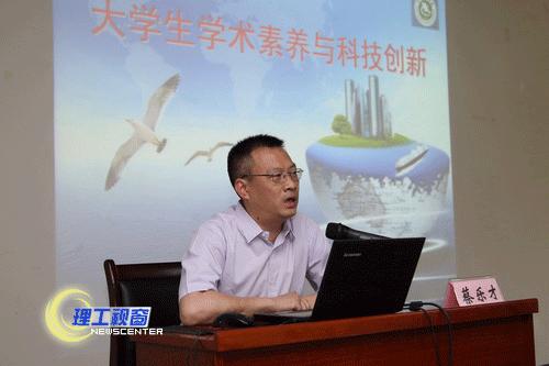 5月22日下午,汇东校区就业指导中心座无虚席,副院长蔡乐才正在作《大学生学术素养与科技创新》讲座,校团委各相关负责人,各学院团总支书记及学生代表到会聆听了报告。