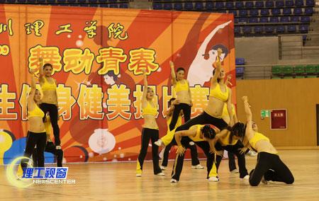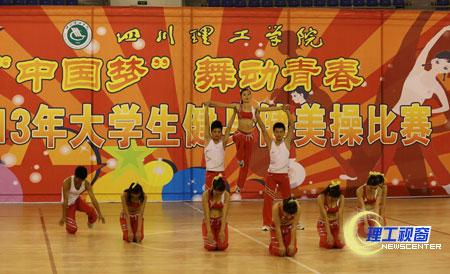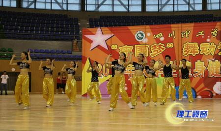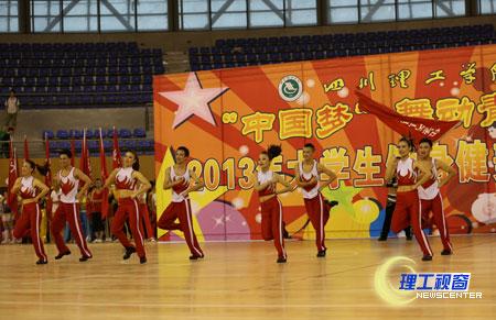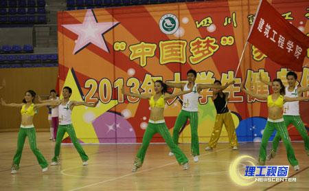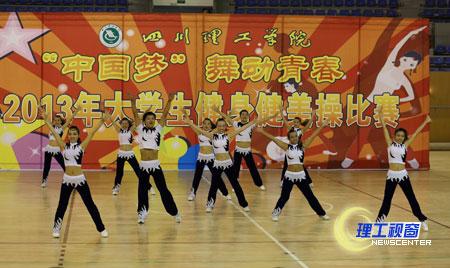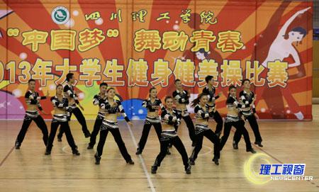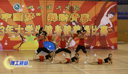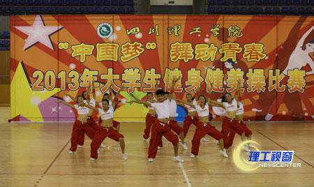 作为我校“实现伟大中国梦,建设美丽繁荣和谐四川”主题教育系列活动之一,5月29日下午,在我校汇东校区体育馆隆重举行2013年大学生健身健美操比赛。来自15个学院及研究生代表队,在此展开了激烈角逐,为师生献上了一道热烈与优美、柔情与力量完美结合的视听大餐。