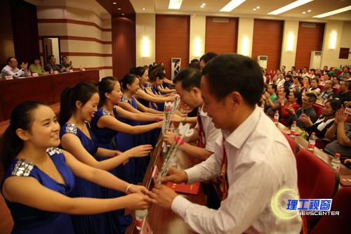 艺术学院的师生们为表彰大会献上了小合唱《每当我走过老师窗前》和表演唱《长大后我就成了你》,深切表达了对老师们的祝福和崇高敬意。