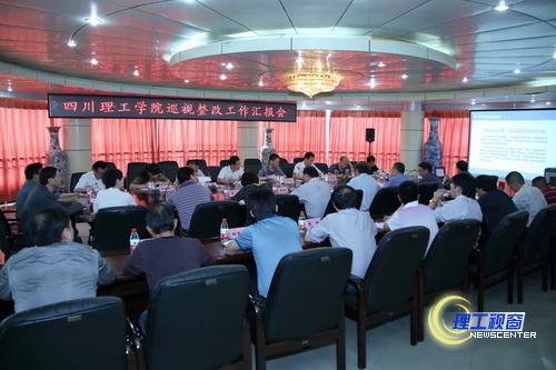 党委书记游建军对学校巡视整改的主要做法、推进学校科学发展、执行民主集中制、加强党风廉政建设责任制、加强作风建设、加强干部选任等方面问题的整改情况进行了全面汇报。他说,自巡视反馈意见一年来,学校将巡视整改工作与深入开展党的群众路线教育实践活动紧密结合起来,从事关党的执政地位、事关学校健康科学发展的层面高度重视,统筹谋划、精心组织、扎实推进各项整改工作,取得了明显成效,有力促进了学校发展。他表示,学校的巡视整改工作虽然取得了一定的成效,但是离省委巡视组对学校的要求、离社会对学校的期盼、离师生员工对学校的希望还存在差距。学校将进一步巩固已经取得的成果,继续推巡视整改工作,诚恳地接受省委巡视组的监督,紧紧围绕学校发展目标,聚精会神抓建设,一心一意谋发展,不辜负上级和广大师生员工的期望,为加快推进我校教育事业科学发展,实现四川多点多极发展战略、全面建成小康社会做出应有的贡献。