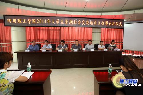 7月7日下午,我校2014年大学生暑期社会实践动员大会暨出征仪式在汇东校区行政中心第三会议室举行。党委副书记李开世,宣传部部长支果,保卫处处长钟世荣,学生处处长胡伟、副处长王令权、鄢万春出席会议并为出征队伍授旗。会议由校团委副书记张潇文主持。