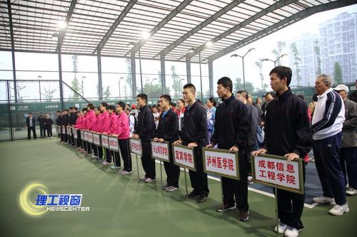 上午8点,大赛举行开幕式。省老教授协会常务副会长吕重久、省高校网球协会主席赖廷谦、省老教授协会副主席董保真、自贡市体育局局长郭连出席仪式。