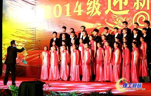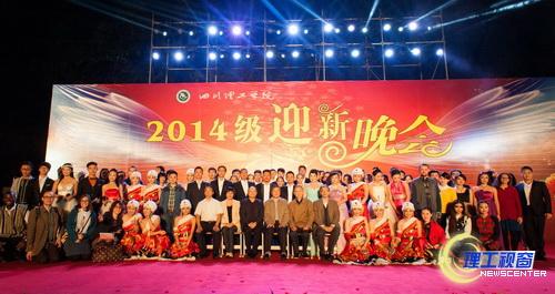 晚会在大合唱《南屏晚钟》、《迎风飘扬的旗》中拉开了序幕。精彩的表演在同学们的欢呼声中接踵登场。2014级新生表演的诗朗诵《以青春的名义宣誓》向我们展示了2014级同学的激情,展现出新一代理工人远大崇高的理想。静如松,动如风,一场《动与静》的武术表演引爆全场,引得在场观众屏气凝神,让我们在欣赏精彩的武术表演的同时感受到理工学子的文武兼修。艺术学院学生的原创歌曲《I Wanna all》充满了青春的活动,展现了原创艺术的魅力。表演唱《锅巴盐》生动的再现了自贡千年的盐业历史,让现场师生领略了自贡盐文化的博大精深,感受到了千年盐都的风韵。艺术学院模特队演绎的《原创服装秀》将我们带进了T台的梦想空间,这些制作精美、款式独特的华丽服饰皆出自我校服装设计专业学生之手。一曲《万家灯火》勾起了师生们的浓浓思乡情,道出了每个人对家的深情。萨克斯演奏《征服》、健美操《舞动梦想》、钢琴独奏《春天的故事变奏曲》等形式多样的节目为我们带来了不一样的视听体验,或静、或动、或欢快、或凝重,引得观众们的思绪起伏,赢得掌声阵阵。来自美国、法国、澳大利亚、印度尼西亚和塞纳里昂的外教和留学生表演了歌曲联唱,他们独特的双语介绍、充满激情的联唱表演赢得了师生的阵阵掌声。新教师邵景霞为师生们演唱了两首深情的歌曲,一曲《你来了》表达了对2014级全体新同学的欢迎,一曲《和谐大家庭》更是深情的道出四川理工学院这个和谐大家庭必将在师生的共同努力中实现跨越式的发展,更加辉煌!其后的藏族舞蹈《唐古拉风》跳出了年轻人的活力,跳出了理工人的激情,更展现出我国各名族团结,国家欣欣向荣的风貌。