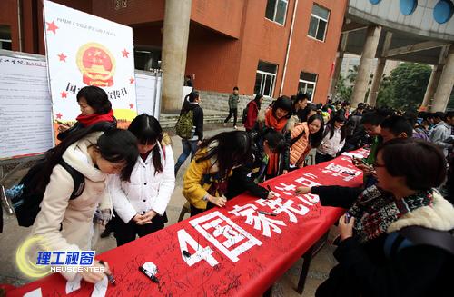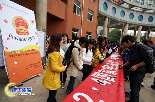 通过自9月以来“法律进高校”一系列宣传教育活动的开展以及 宪法日主题活动,我校学生强化了对宪法精神的学习,深刻理解了建设法治中国是实现中国梦的制度保障,更加坚定了为建设法治中国奉献青春力量的决心。