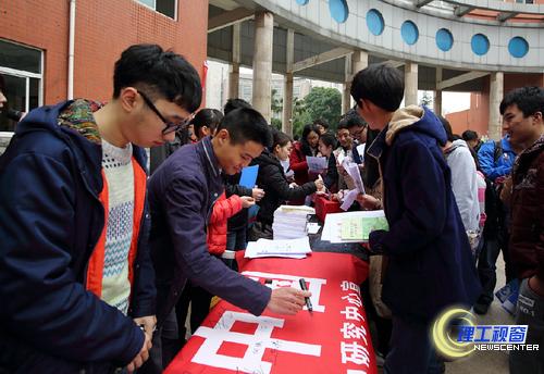 上午,法学院、基层司法能力研究中心、学生处、团委联合在汇东校区喷泉广场举行了题为“弘扬法律精神 建设法治中国”国家宪法宣传日主题签名及法律知识有奖问答活动。法学专业的志愿者印制了关于宪法的宣传册,并现场宣讲有关宪法的知识。许多同学利用课间的时间陆续来到签名现场,踊跃参与宪法知识有奖小问答。党委副书记唐健禾,党委宣传部、学生处、团委、法学院、机械工程学院有关负责人来到活动现场签名。