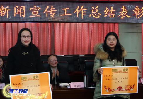 经过评比,荣获2014年新闻宣传先进集体一等奖的是黄岭校区管委会和建工学院,荣获二等奖的是人文学院、生工学院、学生工作部(处);荣获三等奖的是法学院、材化学院、经管学院、机械学院、化学与制药学院。在主席台就坐的领导在会上为获奖单位颁发了奖状。