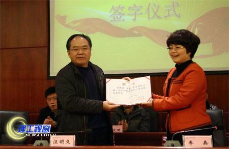 根据合作协议,我校与中昊晨光将在人才培养、项目合作、科技成果转化及报奖、2011协同创新中心、重点科研平台合作等方面进行合作。学校还聘请中昊晨光执行总裁、总经理李嘉为材化学院名誉院长,并聘请包括李嘉在内的10名高工为兼职教授,校长汪明义为他们一一颁发了聘书。