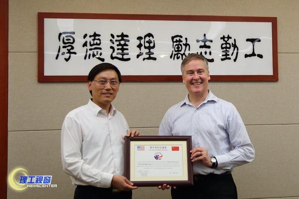 Mikel Herrington向学校赠送了祝贺学校建校五十周年牌匾,回顾了双方19年来的友好合作,感谢学校师生对志愿者教师的全力支持和关照,请学校对志愿者组织的工作提出诚恳的建议和意见。
