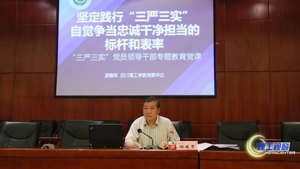 党委书记游建军作了学校“三严三实”专题教育工作动员及题为《坚定践行“三严三实” 自觉争当忠诚干净担当的标杆和表率》的党课报告,从深刻理解“三严三实”的重大理论和实践意义;聚焦对党忠诚、个人干净、敢于担当,把“三严三实”要求落到实处;狠抓关键动作,从严从实做好专题教育;坚持“四个结合”,做到两不误、两促进四个方面进行专题教育党课。游建军指出,开展“三严三实”专题教育意义重大,全校领导干部要认真贯彻落实中央和省委决策部署,扎实抓好专题教育各项工作,以高度的责任心、强烈的进取心,恪尽职守、廉洁奉公、踏实苦干、奋发有为,为大力推进学校“三步走”发展战略,奋力谱写中国梦四川理工篇章而努力奋斗。