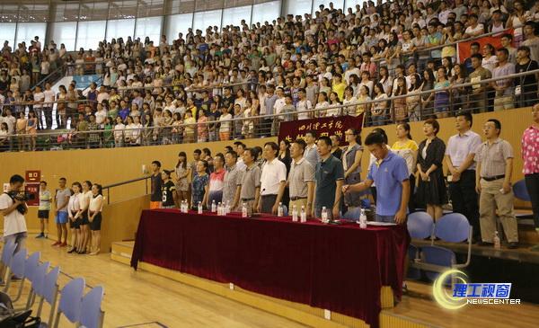 下午2:00,汇东校区体育馆内各参赛队伍依次闪亮登场。学校体育运动委员会主任、副校长王成端,各二级学院领导和职能部门负责人,各学院学生代表,研究生、留学生代表共同观看了比赛。
