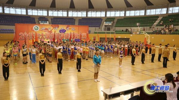 五月是青春的季节,5月27日下午,青春飞扬的大学生们用激情点燃了活力四射的健美操年度大赛。由校体育运动委员会主办,体育学院和学生处共同承办的2015年校大学生健身健美操(舞)决赛共有17支参赛队伍。比赛分为规定动作与自编动作两个部分。