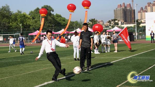 随后,党委副书记、校友总会副会长龚敏宣布比赛开始。庹先国为比赛开球。