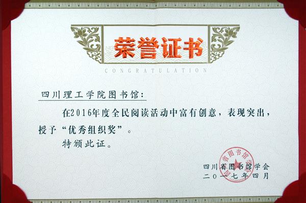 我校荣获“2016年四川省全民阅读活动优秀组织奖”