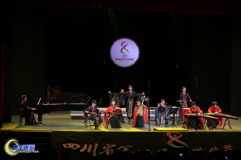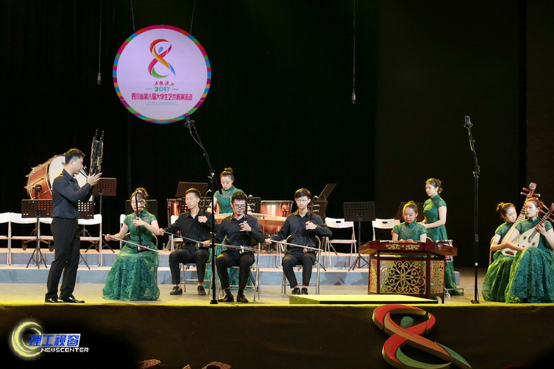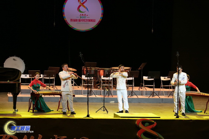 24日下午3点,“五粮液杯”四川省第八届大学生艺术展演中器乐节目甲、乙组联场比赛在汇东校区南区科学会堂拉开序幕。共有16所院校的23个器乐节目参加了此次展演。其中四川大学展演三个作品,西南交通大学、西南医科大学、四川农业大学、电子科技大学、四川理工学院分别展演两个节目。