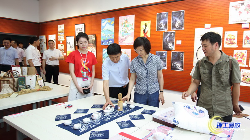 汇报会前,万丽君一行在有关负责同志的陪同下视察了“五粮液杯”2017年四川省第八届大学生艺术展演艺术实践工作坊展区、艺术作品展区。