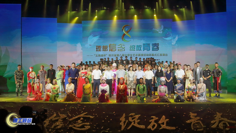 大艺展悦动四川,理想信念,绽放青春。8月26日下午,“五粮液杯”四川省大学生艺术展演活动闭幕式汇报演出在四川理工学院科学会堂隆重举行。教育部体育卫生与艺术教育司副巡视员万丽君、四川省人民政府参事王康、省教育厅副巡视员王嵩建、省教育厅体卫艺处处长李孝武、副处长唐克红、自贡市人民政府副秘书长赵颖红、五粮液集团代表由成逊、中国农业银行自贡分行行长涂克力、我校党委书记王洪辉、校长庹先国等领导出席闭幕式汇报演出。省委宣传部、团省委、省教育厅、省财政厅有关负责同志、全川109所高校党委书记、校长代表、全川21个地市州教育行政主管部门分管美育工作负责人、参演高校领队、指导教师及师生1000余人共襄演出盛举。