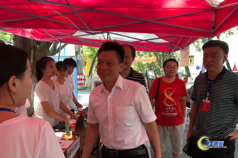 在迎新工作现场,校长庹先国认真查看了美术学院迎新点的工作情况,详细了解了迎新工作的进展、新生报到人数、防暑保障、后勤服务等工作的情况,对迎新工作现场师生的辛勤工作表示赞许。