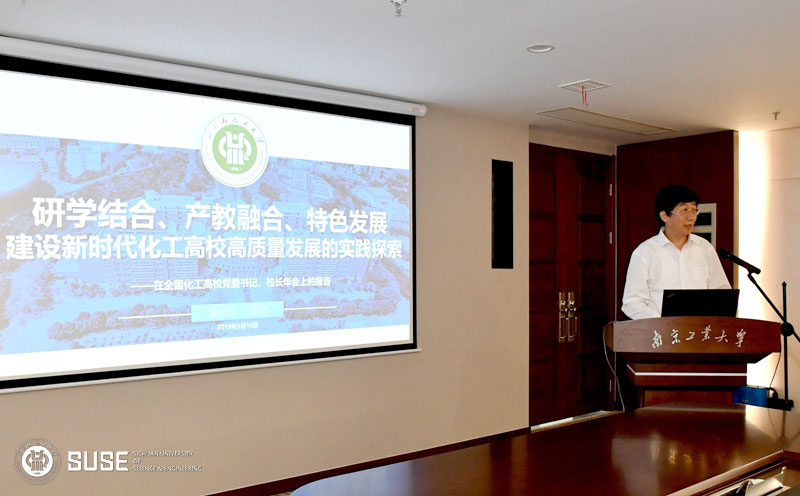 2019年5月9日—11日,由中国化工教育协会主办,南京工业大学承办的2019年全国化工高校党委书记、校(院)长年会暨新时代化工高校高质量发展论坛在南京工业大学江浦校区成功举办。中国化工教育协会会长郝长江,副会长、化学工业出版社社长周伟斌,副秘书长唐旭华等,以及南京工业大学、北京化工大学、郑州大学、浙江工业大学、青岛科技大学、武汉工程大学等16所高校的党委书记、校(院)长50余人参加了本次会议。我校副校长颜杰、化学工程学院长李敏娇、党总支副书记黄斌参加了会议。会议由郝长江会长主持。