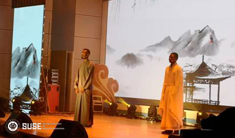 “诵古今经典、书华夏文明、讲中国故事、演蜀风川韵。”5月28日下午,四川省2019年中华经典诵写演系列活动留学生组决赛在四川大学举行。全省有留学生的近30所高校参加,评委初评后从54个节目中选出17个节目参加28日的决赛。我校选送的《乡愁》、《送杜少府之任蜀州+送别》在决赛中分别获得二等奖、三等奖。