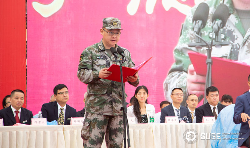 9月2日上午,在开学典礼结束后,我校2019级新生军训动员大会在自贡汇东校区运动场举行。自贡军分区副司令刘新宇大校,战备建设处处长罗军上校,自流井区人民武装部部长汪鲲上校、副部长李强中校,全体校领导及学校各学院和各职能部门的负责同志在主席台就坐。大会由副校长高小林主持。