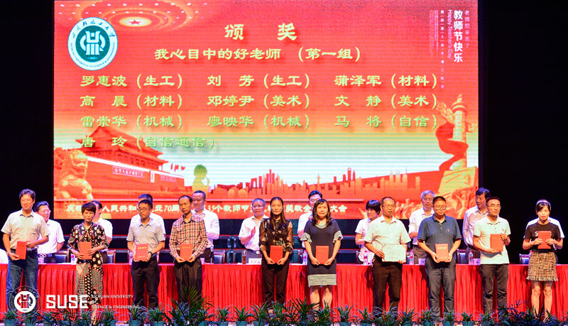 金秋时节,硕果累累。为表彰一年来在教学、科研、管理和服务等方面作出突出成绩的先进集体和先进个人,9月10日下午,我校在自贡汇东校区科学会堂隆重举行“庆祝中华人民共和国成立70周年、第35个教师节暨五粮液奖教金表彰大会”。 自贡市人民政府副市长陈张铭、五粮液集团公司副董事长邹涛、学校党政领导、各机关职能部门负责人、学院党政领导、受表彰人员、学院教师代表、学生代表参加会议。会议由副校长肖兴政主持。