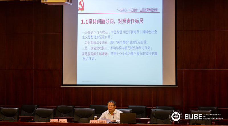 庹先国校长强调,对于学校而言,如何扎根四川主战场,加快推进地方本科高校转型发展,深化产教融合、校企合作?这是学校发展亟待思考的问题。希望全体党员干部切实提高抓落实的能力,关键是要练好四项本领:一要练好善学的本领;二要练好善谋的本领;三要练好善作的本领;四要练好善斗的本领。深入学习贯彻习近平新时代中国特色社会主义思想,开展好主题教育,关键是要把握好“守初心、担使命、找差距、抓落实”这个总要求,瞄准根本任务,锁定具体目标,落实重点措施,务求明显实效。学校将致力于研学结合、产教融合的发展思路,着力把学校的优势与地方经济社会发展进行有效契合,着力为学校长远发展、实力提升提供有力支撑。同时,学校紧紧围绕特色发展这条主线,以培养更优秀的人才,更好地服务于社会的需求。党员干部要以此次主题教育为契机,以扎扎实实的理论学习成效筑牢政治思想根基,切实推动各项工作,切实答好四川轻化工大学转型高质量发展的时代考题,为加快建设特色鲜明、优势突出的高水平大学作出新的更大贡献。