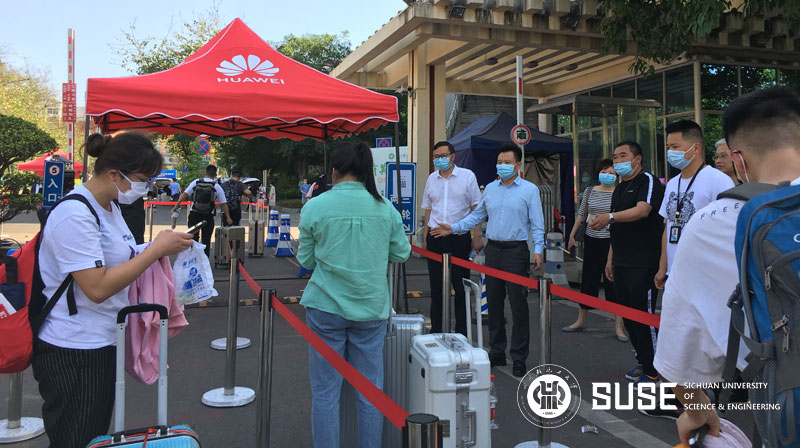 上午,庹先国校长先后来到宜宾校区东南门和东门学生报到现场,对坚守在烈日下的老师和工作人员表示亲切的慰问。并察看了返校学生的体温检测、证件查验、健康码识别、行李消毒等返校流程,逐一询问各学院返校学生的报到情况,详细了解已报到学生的健康状况和异常情况应急处理预案。同时嘱咐大家严格按照学校“七案七制三流程”规范操作,把好“入口”, 将病毒疫情“堵”在校门之外,确保师生健康安全。