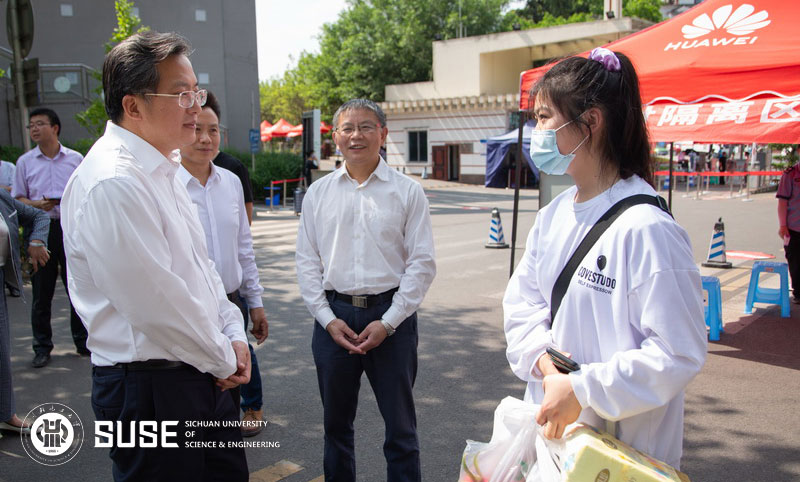 5月15日下午,自贡市委书记范波前往我校营盘、汇东、黄岭和在建的大安校区,调研学校办学、疫情防控工作开展及校区建设情况。自贡市委副书记唐强,市委常委、秘书长、统战部部长徐其斌;我校党委书记王洪辉,校长庹先国,党委副书记龚敏,副校长肖兴政、刘康陪同调研。