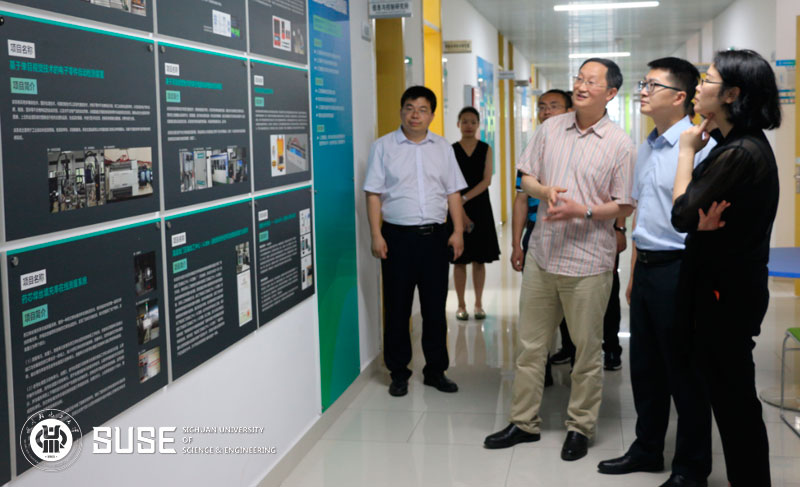 6月11日,四川省发改委全创综合处副处长程思杰、全创综合处张航、刘璇一行莅临我校宜宾校区,就四川省大数据可视分析技术工程实验室建设相关工作进行调研,宜宾市发改委党组副书记、常务副主任刘晓、宜宾市三江新区党工委委员、管委会副主任郭一蓓、宜宾市发改委产业科科长李明刚,我校副校长颜杰、计算机科学与工程学院院长吴亚东、教务处处长孙山、宜宾校区管理办公室副主任韦崇岗、化学工程学院副院长钟俊波等陪同调研。