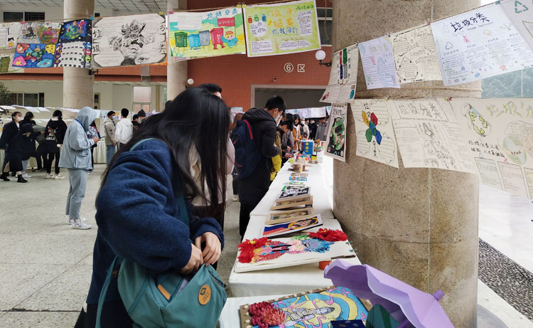 随后,党委副书记龚敏,与会领导、老师和同学们共同参观了“垃圾分类·你我同行”系列活动作品展览。绚丽缤纷的手抄报、别具一格的创意手工制品,琳琅满目,得到了校领导和广大师生的高度赞许,垃圾分类理念深入人心。