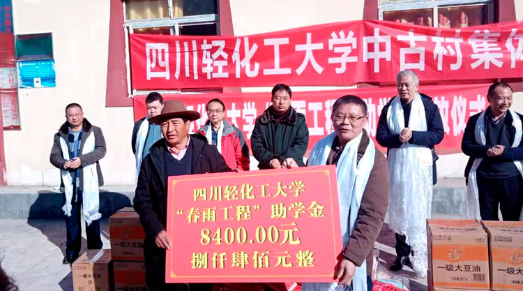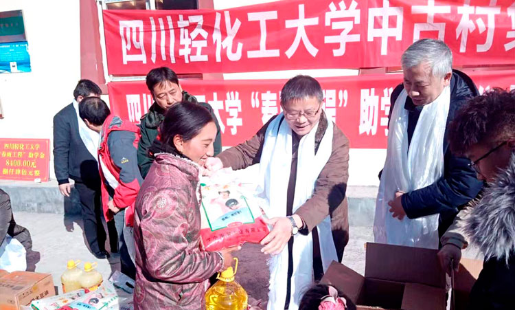 28日上午,王洪辉书记一行在雅江县人民政府副县长陈玉龙、瓦多乡党委书记格让降错、我校扶贫干部雅江县瓦多乡中古村驻村工作队队员张翼宇的陪同下,前往我校定点帮扶的中古村慰问乡亲们。乡亲们看见王洪辉书记一行到来,纷纷上前献上表达敬意的哈达。王洪辉书记发表讲话,对中古村的乡亲们表示慰问,勉励他们继续努力生产和工作,生活一定会越来越美好,并代表学校捐赠了8400元“春雨工程”助学金,资助家庭困难的中古村学子。王洪辉书记一行将米、油等慰问品一一分发给乡亲们,并与乡亲们亲切交谈,了解他们的生产生活情况。虽然天气寒冷,但是慰问现场情意浓浓,乡亲们非常高兴,脸上洋溢着幸福的笑容。