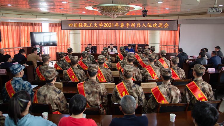 我们风华正茂,我们矢志从军,我们携笔从戎,我们青春无悔!3月15日下午,2021年春季新兵入伍欢送会在自贡汇东校区综合楼第五会议室举行。党委书记王洪辉亲临现场,为新兵们送上叮嘱与祝福:军队生涯磨利剑,正义修身立战功;军旅生活当好兵,一生都做“排头兵”!