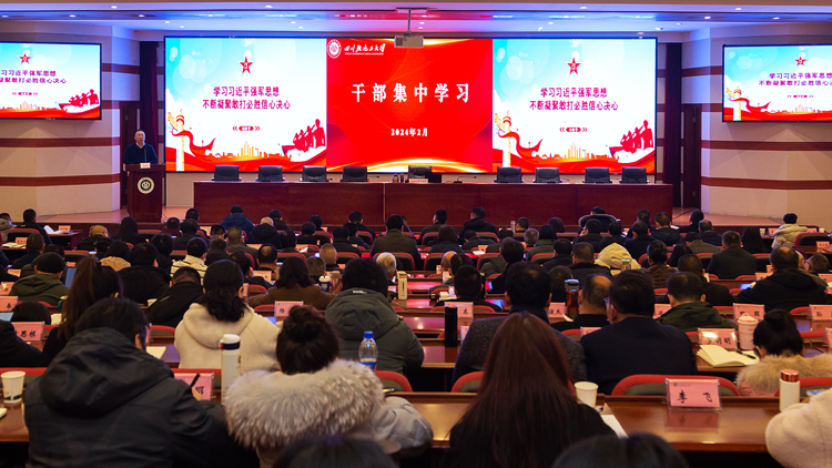 为巩固深化学习贯彻习近平新时代中国特色社会主义思想主题教育成果,完善党员干部理论教育培训长效机制,推动党的创新理论入脑入心、见行见效,新学期伊始,我校开启了新一轮干部教育培训。2月29日下午,自贡军分区大校副司令员刘新宇应邀到校,对习近平强军思想进行深入讲解。党委副书记陈一君主持学习会。