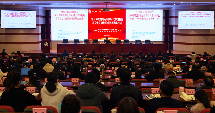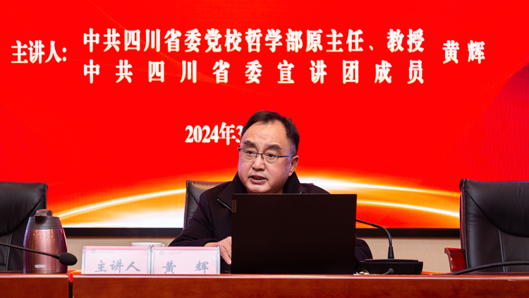 我校举办“习近平新时代中国特色社会主义思想的世界观和方法论”专题讲座 为巩固和深化主题教育理论学习成果,进一步加强干部队伍思想政治素养和理论修养,作为新学期干部教育培训的重要内容,3月1日下午,我校特邀中共四川省委宣讲团成员、中共四川省委党校哲学部原主任黄辉教授,作题为“学习和把握习近平新时代中国特色社会主义思想的世界观和方法论”的专题讲座。