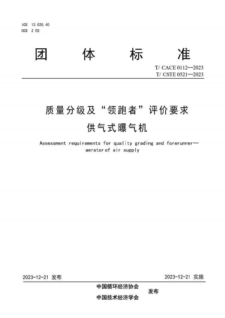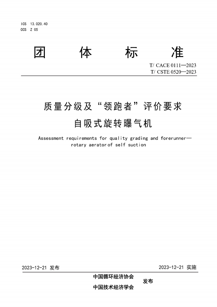 学校两项国家级团体标准获批发布并予实施 近日,由中国循环经济协会和中国技术经济学会联合发布的“质量分级及‘领跑者’评价要求 自吸式旋转曝气机”“质量分级及‘领跑者’评价要求供气式曝气机”两项国家一级行业协会和学会的团体标准准予实施。我校作为标准制定第二单位带领我校教师领办创办的科技型公司共同完成了标准的创建编制工作。