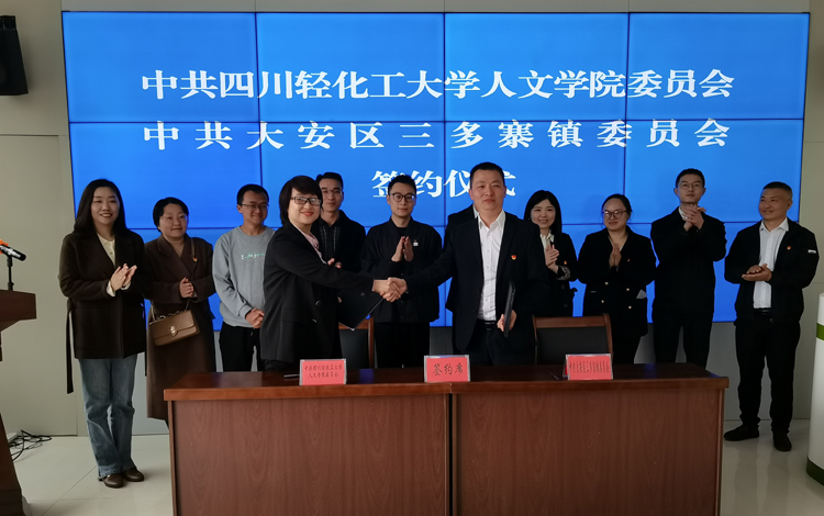 为深入探索校地合作新模式,推动校地深度融合共谋新发展,人文学院党委与自贡市大安区三多寨镇委员会于3月19日下午在三多寨镇八甲村举行了党组织共创共建合作工作协议的签署仪式。人文学院党委书记朱德珍,三多寨镇委员会书记陈楷、副书记陈瑞等共同见证并推动这一重要时刻。