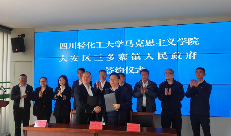 3月19日上午,马克思主义学院与自贡市大安区三多寨镇人民政府达成战略合作并在该镇八甲村村委会举行签约仪式。