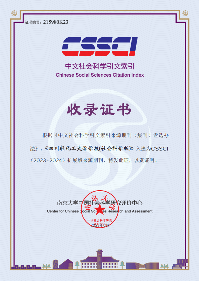《四川轻化工大学学报(社会科学版)》入选CSSCI(2023—2024)扩展版来源期刊