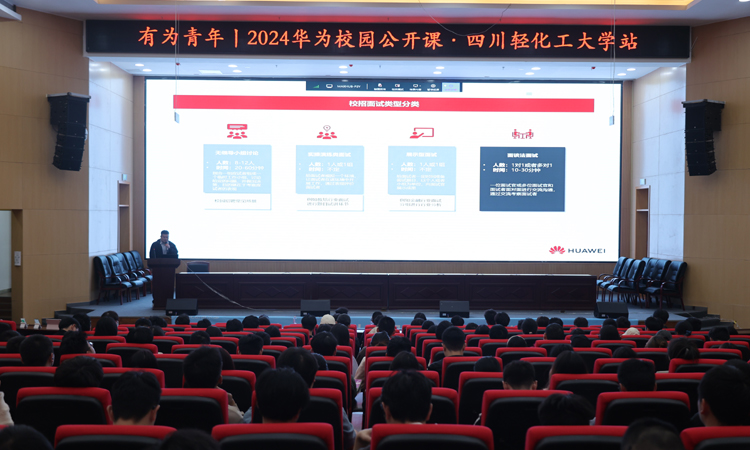 4月9日下午,“有为青年”2024华为校园公开课四川轻化工大学站在宜宾校区举行。招生就业处处长蒋维东在活动开始前致辞,对华为公司讲师团一行表示欢迎,并就学校在人才培养、科技创新、文化传承、社会服务、对外交流等方面具有的自身独特优势和鲜明特点作了简要介绍。他指出,学校始终以强化学生职业胜任力和持续发展能力为目标,搭建校企合作平台,做好人才服务工作,加速人才培养进程,助力企业人才培养工作。此次华为校园公开课对推进学校就业创业工作,增强学生就业创业能力具有重要意义。