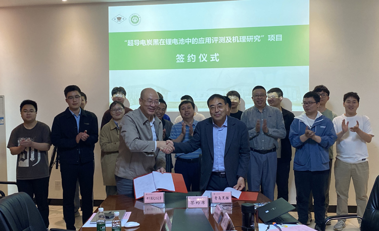 张颖代表四川轻化工大学对青岛黑猫研究院王宏总经理一行的到来表示热烈欢迎,并介绍了四川轻化工大学的科研情况,希望发挥双方优势,进一步加强合作,多出成果,实现成果转化。王宏总经理一行观看了材料科学与工程学院宣传片,参观了实验室,并介绍了青岛黑猫研究院基本情况及近年来的发展状况和技术需求。双方签订“超导电炭黑在锂电池中的应用评测及机理研究”项目合作协议,共同开展黑猫国产超导电炭材料在新能源领域的开发及应用布局,助力黑猫加速实现产业转型升级。