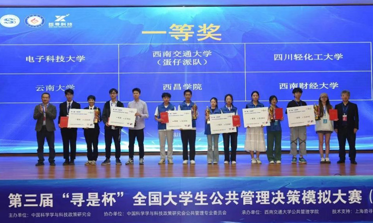4月27日-28日,由中国科学学与科技政策研究会主办、西南交通大学公共管理学院承办、上海哲寻信息科技有限公司提供技术支持的第三届“寻是杯”全国大学生公共管理决策模拟大赛(西南赛区)在四川成都举行,来自西南地区的四川大学、重庆大学、电子科技大学、西南交通大学、西南财经大学、云南大学、贵州大学、西南大学、西南医科大学、四川轻化工大学等43所高校的44支队伍参加了比赛。