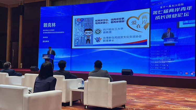 我校台胞、法学院副教授赖克林博士受邀参加第七届两岸青年成长创业论坛并交流发言,此论坛属第十一届大江论坛之分论坛。赖克林在发言中表示,两岸同属一个国家、一个民族,要多交流合作,做增进两岸同胞福祉的事,促进两岸融合发展。他在交流中提出了“双创双融”理念,新时代青年要融合两岸优势,跨海融合、跨域融合,面对未来AI时代的契机与挑战,两岸青年必须坚定理想信念,创造思维新、视野广的社会设计思维,进一步为未来新征程创新、创享共同努力,携手同心为实现民族复兴而努力。