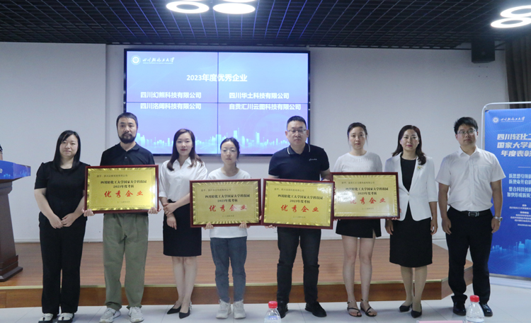 为深入实施创新驱动发展战略,激发创新主体活力,进一步提升四川轻化工大学国家大学科技园成果转化、创业孵化、资源集聚、人才培育和协同创新等核心功能,促进科技、教育和经济融通发展,5月15日下午,四川轻化工大学国家大学科技园企业年度表彰大会在大学科技园路演中心隆重举行。自贡市科技局、四川银行自贡分行、自贡市高新技术创业服务中心、大学科技园管理办公室等有关领导及园区企业代表出席会议。会议由大学科技园管理办公室副主任董亮主持。