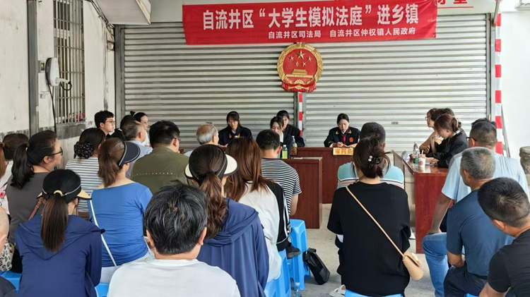 5月21日下午,我校法学院2022级法学专业学生在自贡市自流井区仲权镇人民政府开展了“模拟法庭进乡村”活动。活动由自贡市自流井区司法局、四川轻化工大学法学院以及仲权镇人民政府联合举办,旨在推进乡村振兴、送法下乡,提高村民综合法治素养,弘扬法治精神。法学院原副院长蔡文钦副教授、教师赵紫雄、自流井区司法局长范文彬以及仲权镇村民近30人观看了模拟庭审活动。